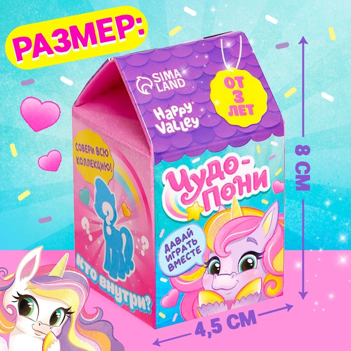 Габариты: 4,5 x 4,5 x 8 Страна: Китай В боксе: 500 шт Состав: Пластик Материалы: пластик Фасовка: по 1 шт Индивидуальная упаковка: Картонная коробка Габариты товара: 4 см × 2,5 см × 5 см Сертификат: ЕАС Цвет: МИКС Для кого: Для девочки Высота, см: 5 Возраст: От 3 лет Вид упаковки: Коробка картонная Символ года: Символ года 2026 (Лошадь) Тематика праздника: Новый год Материал: Пластик Особенности куклы: Без особенностей Вид: Пони Фиксированная цена: Да Ваша принцесса любит получать подарки-сюрпризы и ухаживать за животными? Тогда эта игрушка станет отличным презентом для неё! Внутри коробочки она найдёт пони. Упаковка красочная, поэтому можно вручить в подарок даже без дополнительного праздничного оформления. Подробнее об игрушке