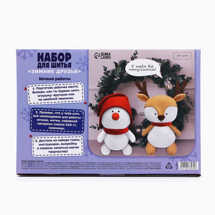 Габариты: 5,5 x 22,5 x 15,5 Страна: Китай В боксе: 40 набор Состав: Бумага, металл, пластик, текстиль Материалы: бумага, металл, пластик, текстиль Фасовка: по 1 набор Индивидуальная упаковка: Цветная картонная коробка Габариты товара: 22,4 см × 15,6 см × 5,2 см Сертификат: Не подлежит сертификации Для кого: Унисекс Возраст: От 7 лет Символ года: Нет Тематика праздника: Новый год Материал: Текстиль Возраст: Для взрослых, Для детей С нашим набором для творчества вы легко создадите красивые и уникальные игрушки. Особенности набора: Чем полезно? Набор развивает мелкую моторику рук, координацию движений, тренирует усидчивость, аккуратность, внимательность, помогает формировать зрительное восприятие и художественный вкус. Желаем вам приятных минут творчества! Комментарии к товару