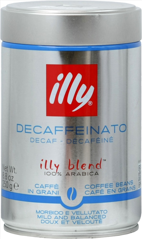 Кофе натуральный зерновой.illy Decaffeinato — обжаренный кофе без кофеина, который обладает неповторимо мягким и бархатистым вкусом уникальной 100% арабики. Вкусовые отличия: нежные нотки карамели, шоколада и поджаренного хлеба со сладким послевкусием. Содержит не более 0,1% кофеина.