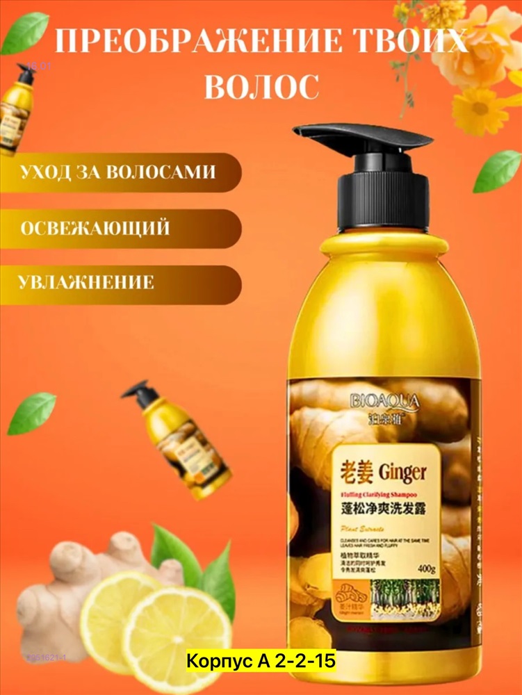 Объем 400млИмбирный шампунь для волос без силикона bioaqua ginger shampoo Шампунь содержит растительную моющую основу, без сульфатов, без силикона, без искусственных красителей и минеральных масел.