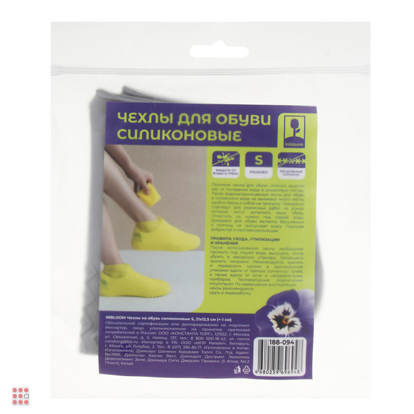 Чехлы на обувь силиконовые INBLOOM – это эффективная защита ног и обуви от намокания и грязи в дождливую погоду. Теперь непогода не страшна, ведь чехлы на 100% водонепроницаемые, а значит любая обувь останется абсолютно сухой. В сложенном виде не занимают много места, поэтому их всегда можно носить с собой. Прекрасно подходят для различных работ на улице и приусадебном участке. Легко очищаются под струей воды. Изготовлены из бесшовного силикона, что исключает пропускание влаги. Имеют ребристую противоскользящую подошву, обладают повышенной прочностью и стойкостью к износу и проколам. Размер – S. Комментарии к товару