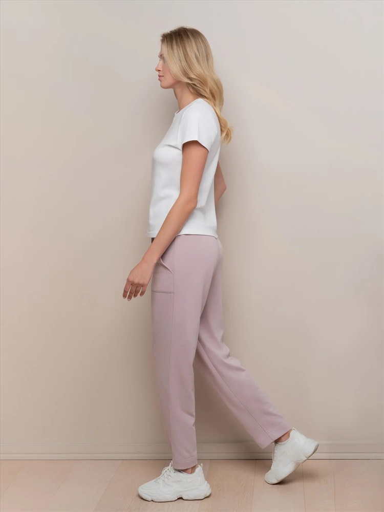 Брюки из мягкой смеси хлопка и полиэстера обеспечивают комфорт и легкость в уходе, оставаясь долговечными и приятными к телу. Благодаря широкой эластичной резинке брюки надежно сидят на талии, а регулирующий шнурок позволяет адаптировать посадку под индивидуальные предпочтения. Прямой крой обеспечивает свободу движений, делая брюки подходящими как для дома, так и для активного отдыха.