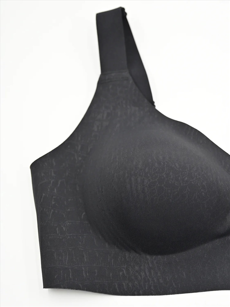\n Бесшовный бюстгальтер без косточек из полиамида обеспечивает поддержку груди и комфортное ношение в течение всего дня. Внутри имеются слитные несъемные чашки. Данная модель не имеет косточек, а отсутствие швов делает его незаметным под одеждой. Широкие бретели равномерно распределяют нагрузку на плечи, снижая риск возникновения дискомфорта и боли в этой области.\n\n