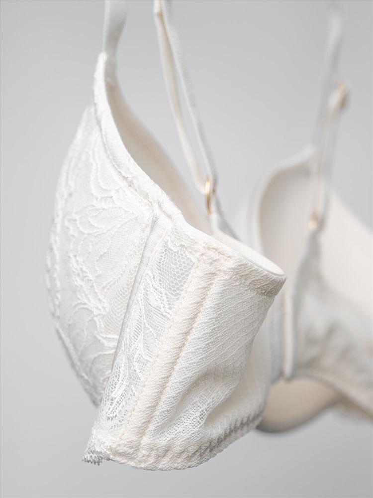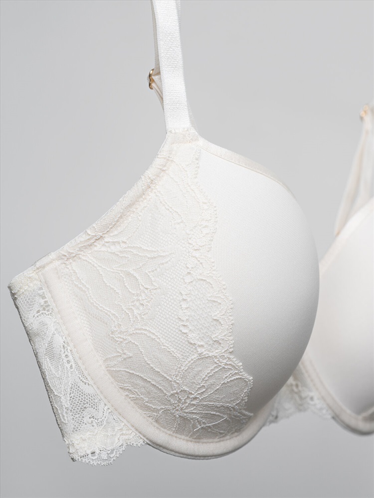 Роскошный бюстгальтер молочного цвета, выполненный из мягкого полиамида с добавлением эластана. Чашечки оснащены инновационным 3D-материалом, главной особенностью которого является уникальная текстура, позволяющая свободно проходить воздуху сквозь чашку бюстгальтера, благодаря чему кожа может свободно дышать в течение дня.