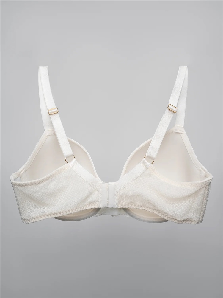 Роскошный бюстгальтер молочного цвета, выполненный из мягкого полиамида с добавлением эластана. Чашечки оснащены инновационным 3D-материалом, главной особенностью которого является уникальная текстура, позволяющая свободно проходить воздуху сквозь чашку бюстгальтера, благодаря чему кожа может свободно дышать в течение дня.