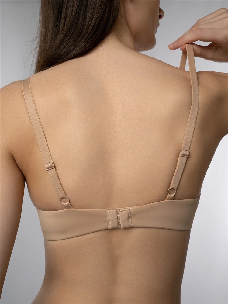Современный бежевый бюстгальтер выполнен из мягкого эластичного материала, который обеспечивает комфортную посадку и свободу движений.