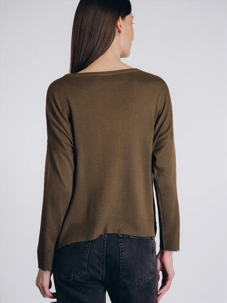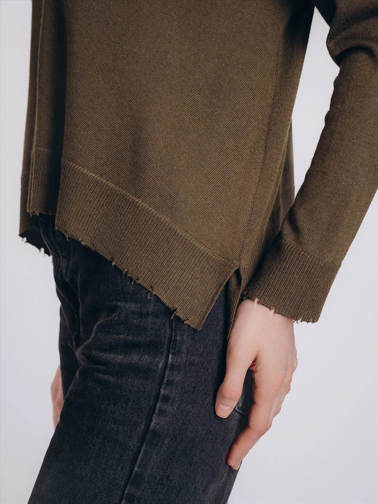 Женская кофта бренда Indefini выполнена в приглушённом оливковом цвете из мягкой смесовой ткани с высоким содержанием полиэстера, акрила, нейлона и шерсти.