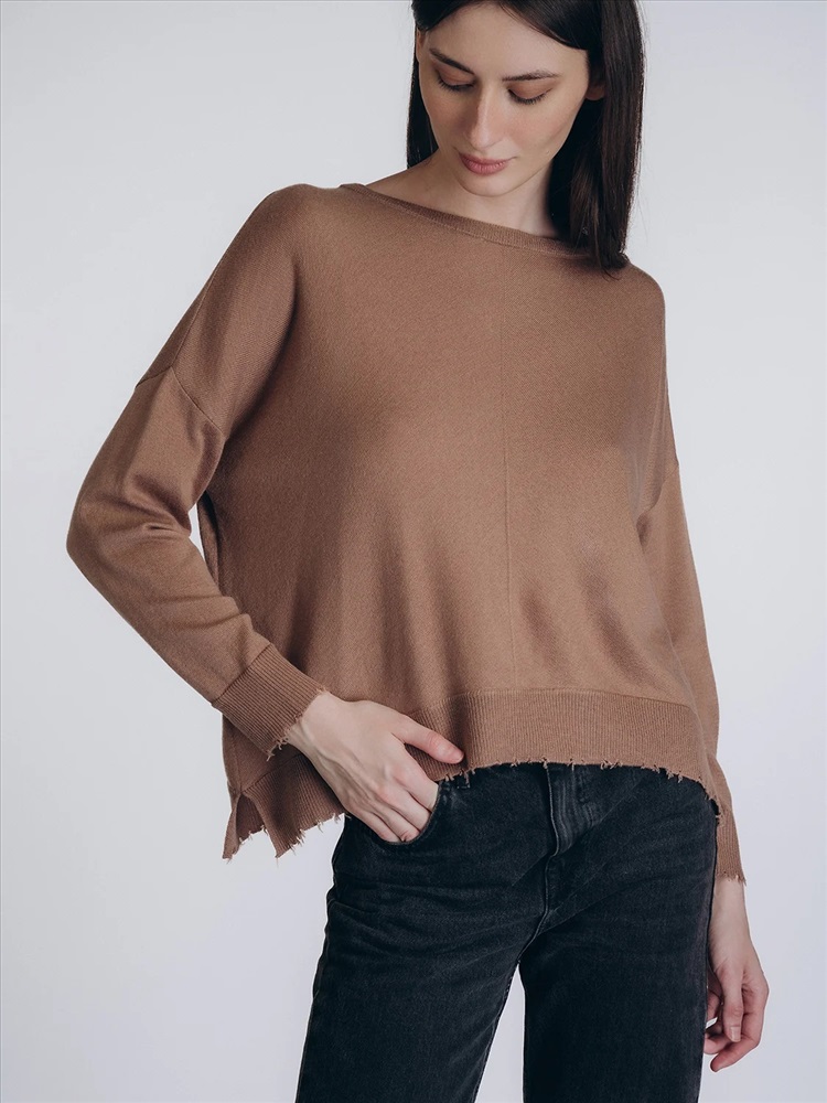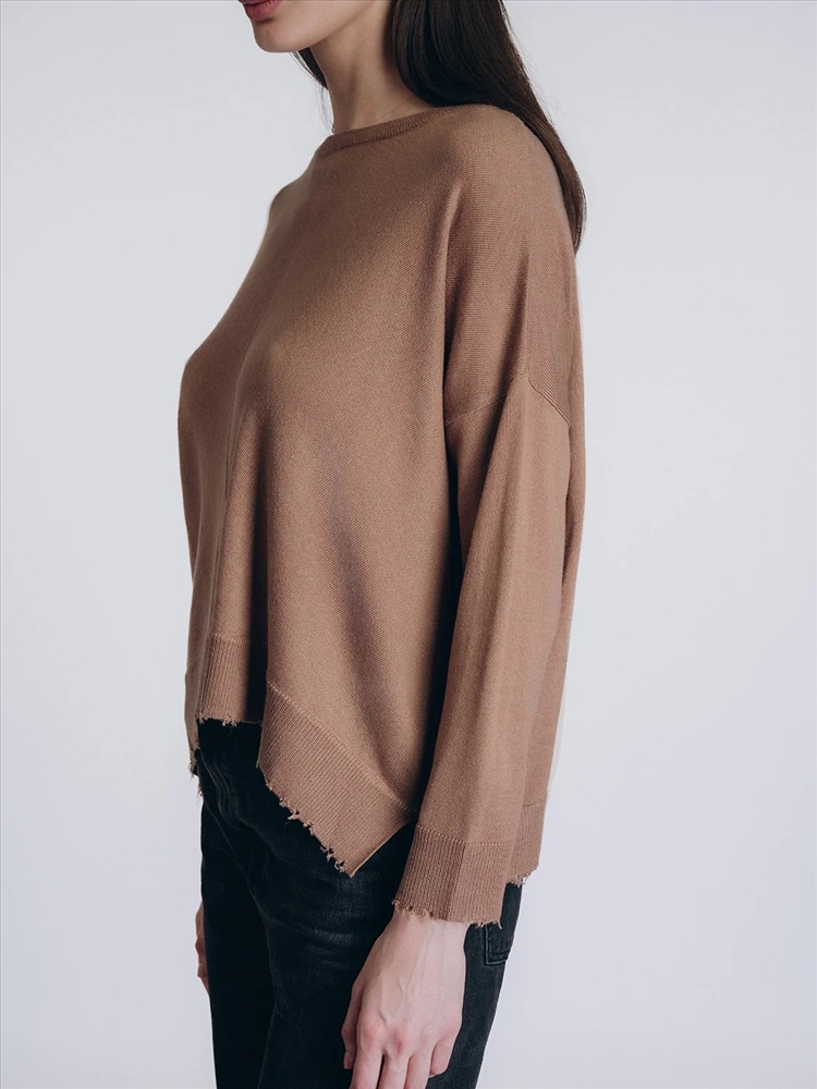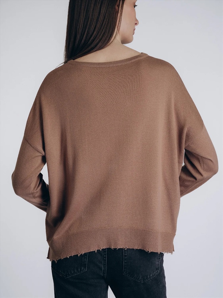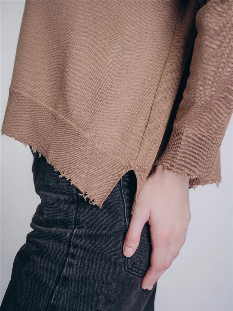 Нежный бежевый оттенок придаёт образу утончённость и современную лаконичность, делая эту кофту универсальным элементом повседневного гардероба.