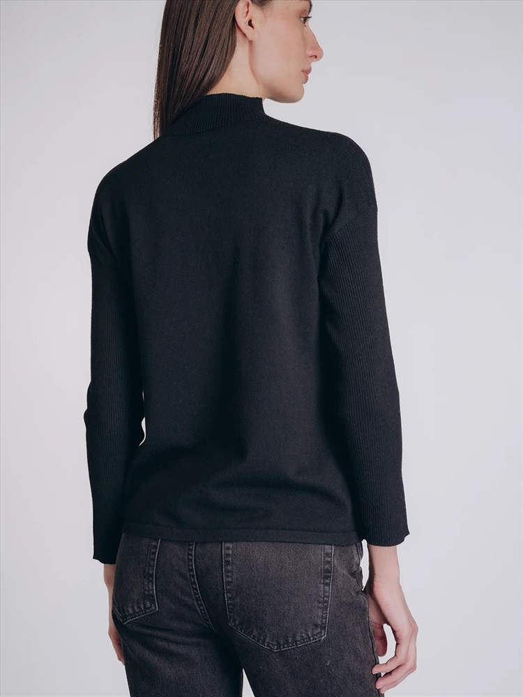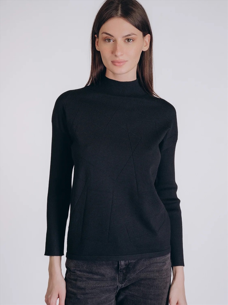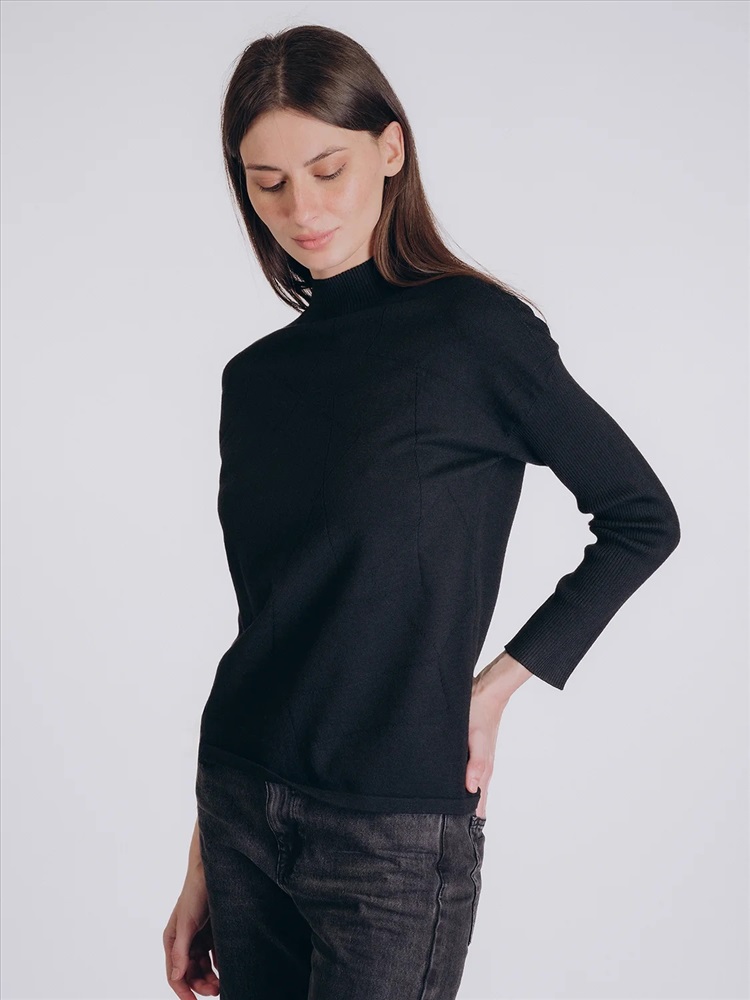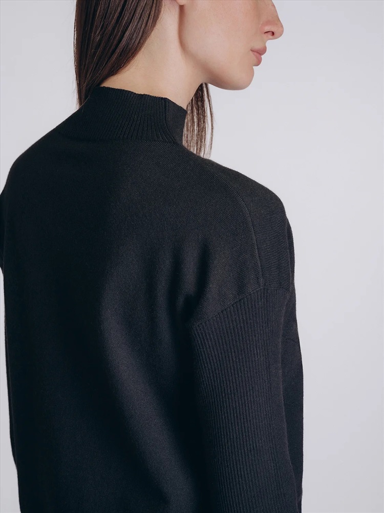 Глубокий черный оттенок и лаконичный дизайн придают образу утончённость и современную элегантность, делая эту кофту универсальным элементом гардероба.
