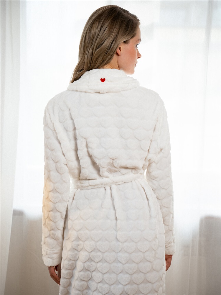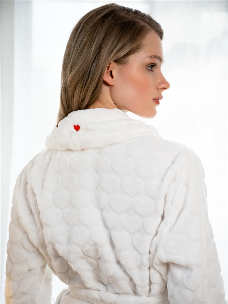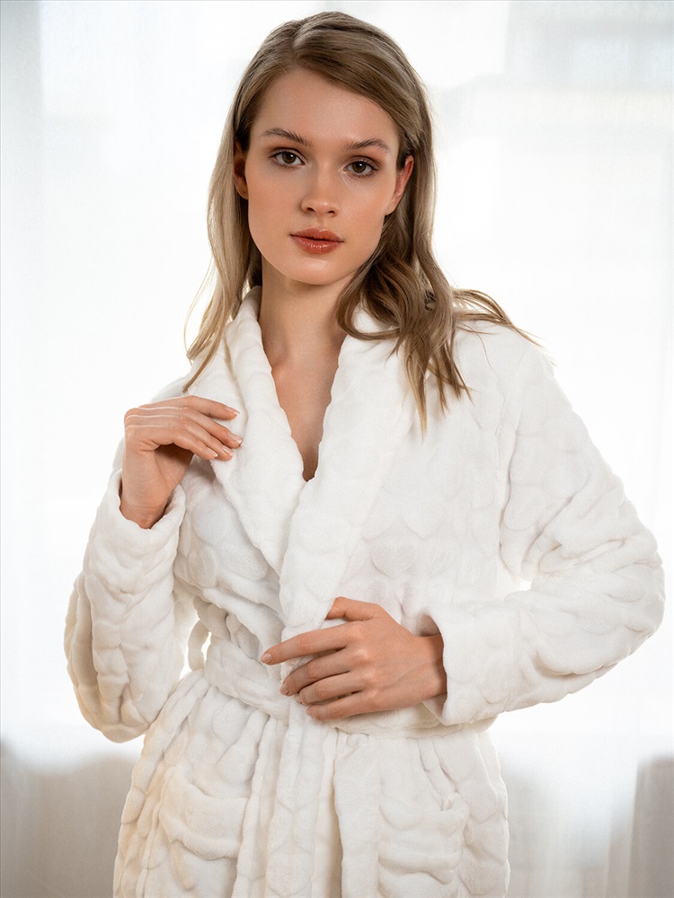 Мягкий белый халат 5178SYC от бренда indefini выполнен из приятного на ощупь и легкого материала.