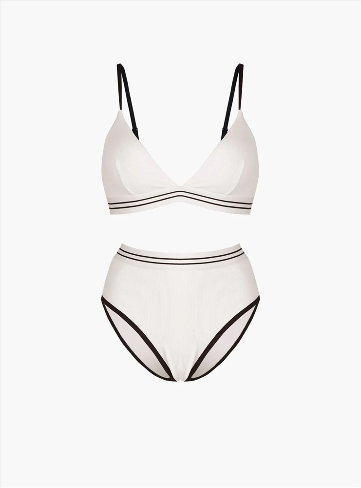 Производитель: INDEFINI; Российский размер: 42, 44; Обхват груди: 82-90; Обхват талии: 62-70; Обхват бедер: 90-98; Артикул поставщика: 5039YBE; Состав: 80% Полиамид, 20% Эластан.; Год: 2025; Страна: Россия Раздельный купальник, изготовленный из полиамида, выполнен в белом цвете с фактурной тканью. В комплекте бюстгальтер и трусы слипы. Бюстгальтер имеет тонкие регулируемые черные бретели и треугольные поролоновые съемные чашки без эффекта Push-Up. Трусы слипы средней посадки на мягкой эластичной резинке. Нижние вырезы обрамлены черной каймой. Пояс бюстгальтера и резинка на трусах выполнены в черную полоску.