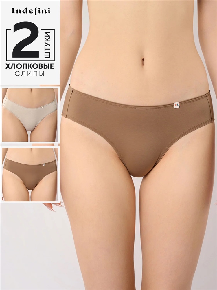 Комплект женских трусов-слипов от Indefini — это идеальное сочетание простоты, комфорта и практичности. Представлен в двух нейтральных оттенках: бежевом и светло-кремовом, что делает их универсальными для повседневного использования под любую одежду.