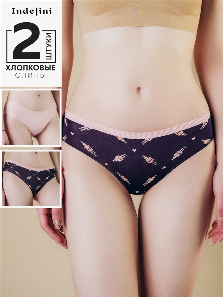 Набор женских трусов-слипов Indefini выполнен из мягкого хлопка с добавлением эластана, что обеспечивает отличную посадку и комфорт на каждый день. В комплект входят модели в нежно-розовом и тёмно-сером цветах с оригинальным принтом в виде игрушечных солдатиков и сердечек.
