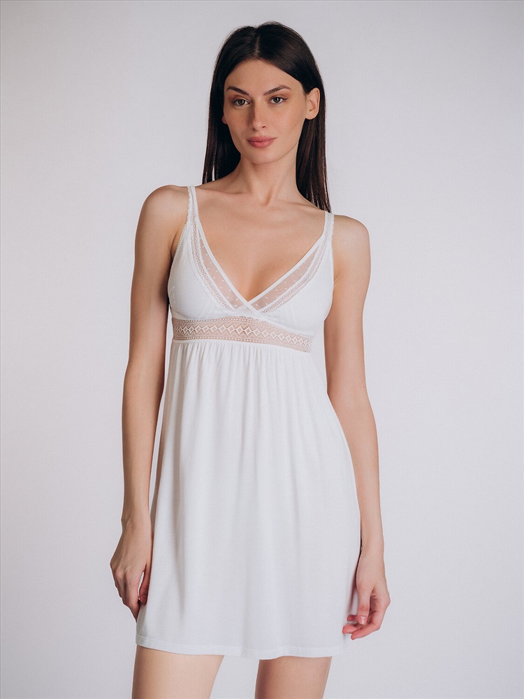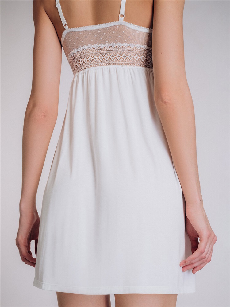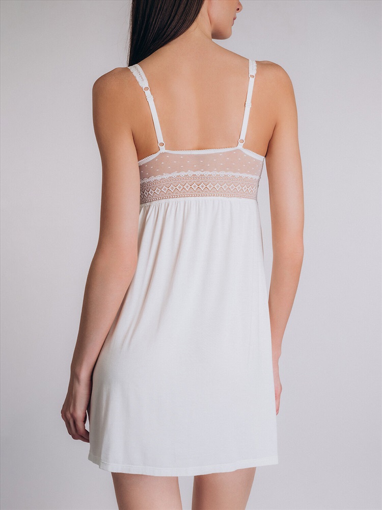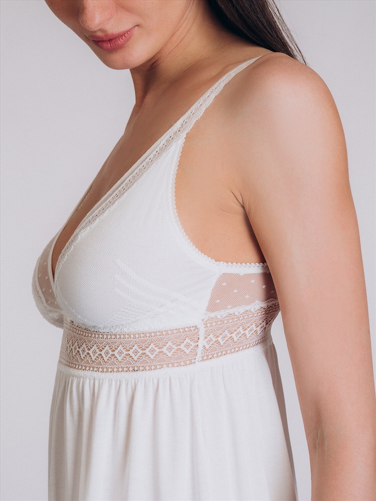 \n Женская сорочка Indefini 5019SDD выполнена из легкого воздушного материала белого цвета, украшенного изысканным кружевом.