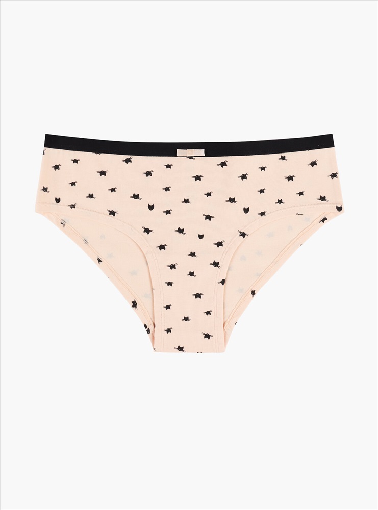 Женские трусы от торговой марки Индефини. Трусы-шорты из хлопка, бежевого цвета, с принтом, на мягкой резинке, средней посадки.