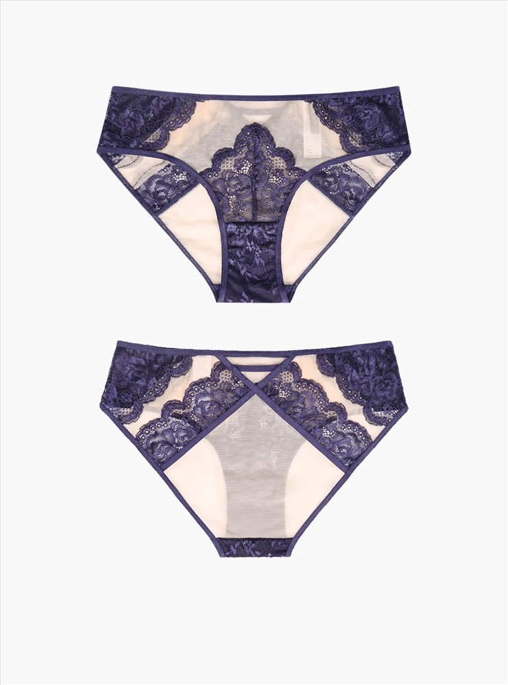 Производитель: INDEFINI; Российский размер: 42, 44; Обхват груди: 82-90; Обхват талии: 62-70; Обхват бедер: 90-98; Артикул поставщика: 1224WUV; Состав: 90% Полиамид 10% Эластан; Год: 2025; Страна: Россия Трусы слипы женские изготовлены из полиамида. Трусы имеют среднюю посадку, удерживаются во время носки тонкой мягкой резинкой. Ткань выполнена в синем цветочном кружеве, спереди и сзади имеются сетчатые вставки. На задней части имеется треугольный вырез. На внутренней стороне трусов расположена хлопковая ластовица.