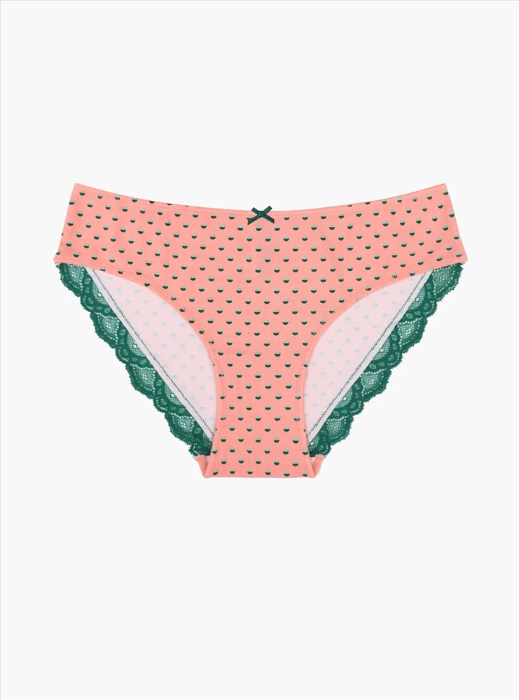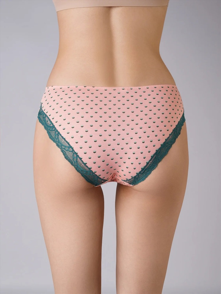 Трусы-слипы в горошек, изготовленные из бамбука и хлопка, мягкие на ощупь и приятно ощущаются на коже. Средняя посадка обеспечивает комфортную поддержку и свободу движений. Мягкая эластичная резинка обеспечивает надежную посадку без дискомфорта. Обрамление из зеленого кружева сзади добавляет нотку изысканности и шарма.