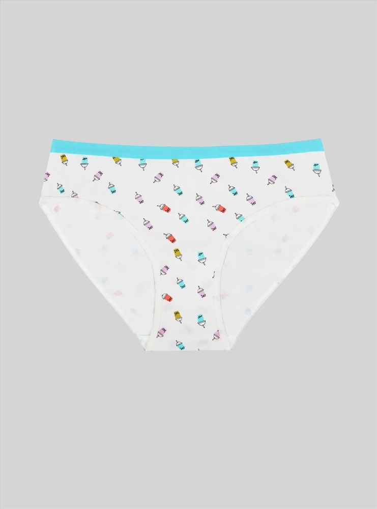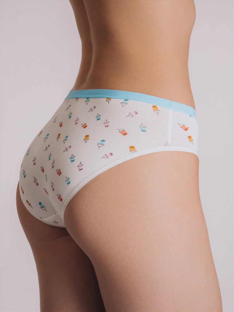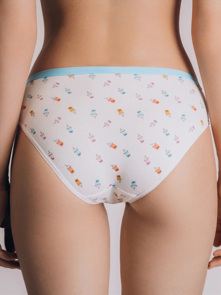 Белоснежные трусы-слипы от бренда Indefini с забавным принтом. Модель выполнена из мягкого хлопка с эластичной ярко-голубой резинкой, которая обеспечивает комфортную посадку без сдавливания