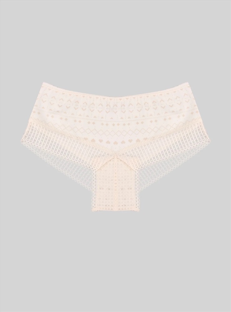 Трусы шорты женские, изготовленные из натурального хлопка, обеспечивают мягкость и воздухопроницаемость. Средняя посадка и мягкая эластичная резинка на талии гарантируют надежную фиксацию и комфорт во время носки. Принт с узорами и кружевное обрамление придают трусам шортам изысканную и женственную нотку.