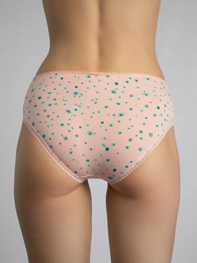 Нежно-розовые трусы-слипы от бренда Indefini с милым цветочным принтом. Модель выполнена из мягкой смеси бамбука и хлопка с добавлением эластана, что обеспечивает отличную посадку и комфорт в течение дня. Эластичная резинка и деликатная кружевная отделка по краям делают изделие особенно приятным в носке.