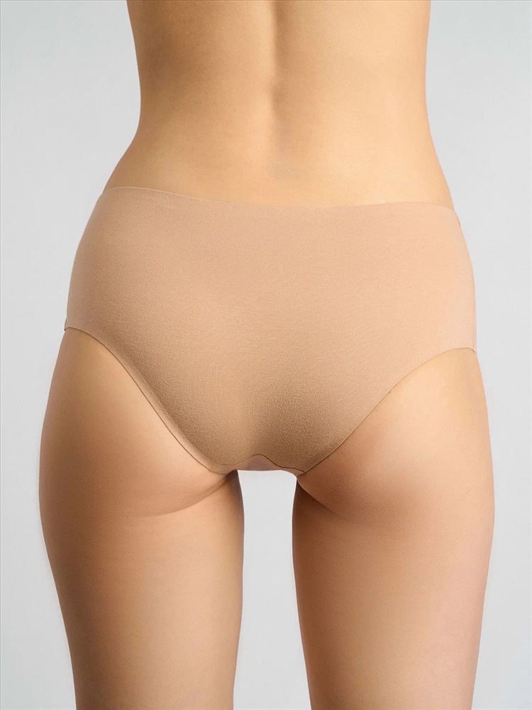 Модель трусов Бразильяна средней посадки выполнена из эластичного трикотажа и обработана по инновационной технологии клеевого соединения швов и срезов.