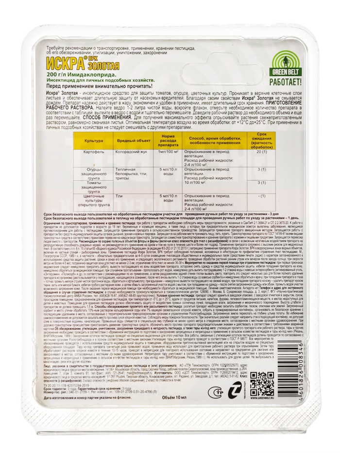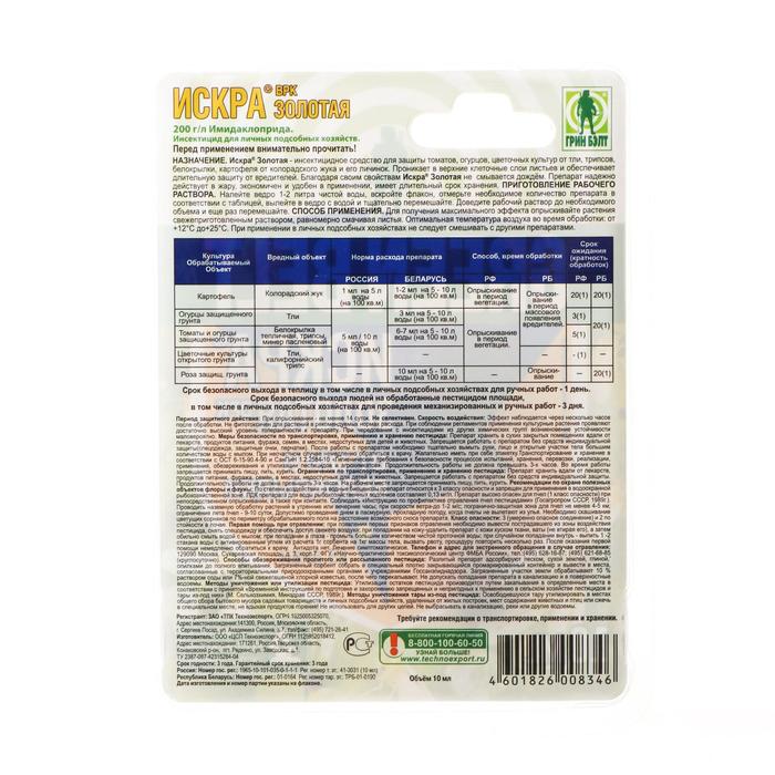 «ИСКРА Золотая» — одна из новейших разработок в классе препаратов на основе имидаклоприда, получившего самое широкое распространение в мире: успешно применяется в 120 странах для обработки более 140 различных видов культур.