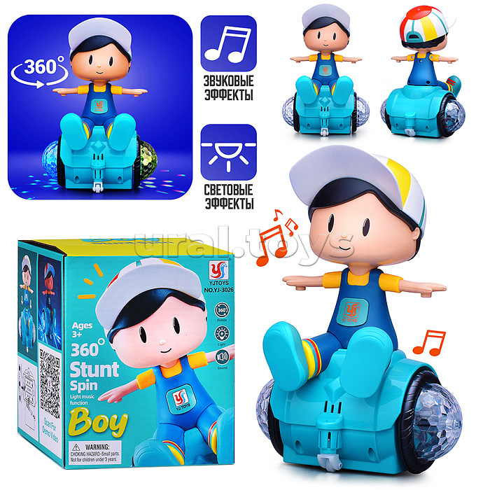 • Размеры игрушки: 13х9х20 см. • Функции: - механизм кругового движения. - играет мелодия. - подсветка корпуса. • Для работы нужны 3 батарейки "АА" (не входят в комплект) • Материал: пластик. • Соответствует требованиям безопасности продукции. • Для детей от 3-х лет.