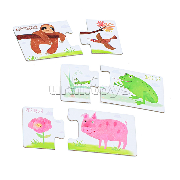 • В наборе 24 детали для сборки 12 пазлов. • Размеры пазла: 6х11 см. • Материал: картон. • Соответствует требованиям безопасности продукции. • Для детей от 2-х лет.
