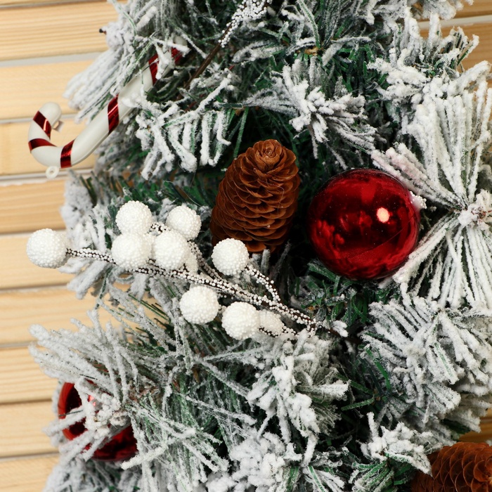 Праздник начинается с одного взгляда на снег и крону Эта ёлка делает любое помещение частью вашей личной зимней истории. Зелёные тона, дополненные заснеженными акцентами и красными ягодами, работают вместе, чтобы передать дух чуда и семейное ожидание праздника. Используйте её как самостоятельный элемент или как фон для других украшений — одинаково хорошо усиливает атмосферу торжества и доброжелательность дома. Комментарии к товару
