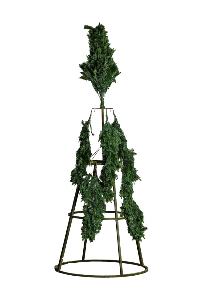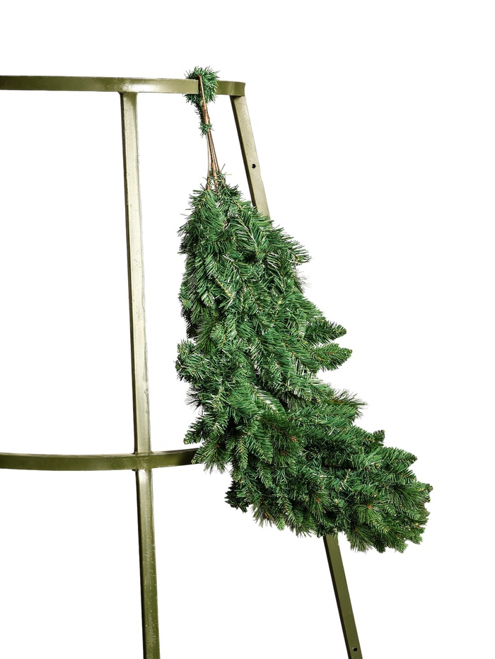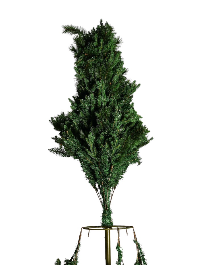 Высокая зелёная ёлка с комбинированными ветвями высотой 4 метра органично впишется в оформление просторных залов и общественных пространств. Каркасная основа с креплением веток на крючках облегчает сборку и демонтаж, а гибкие ветви позволяют регулировать плотность и форму кроны.
