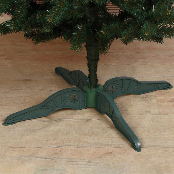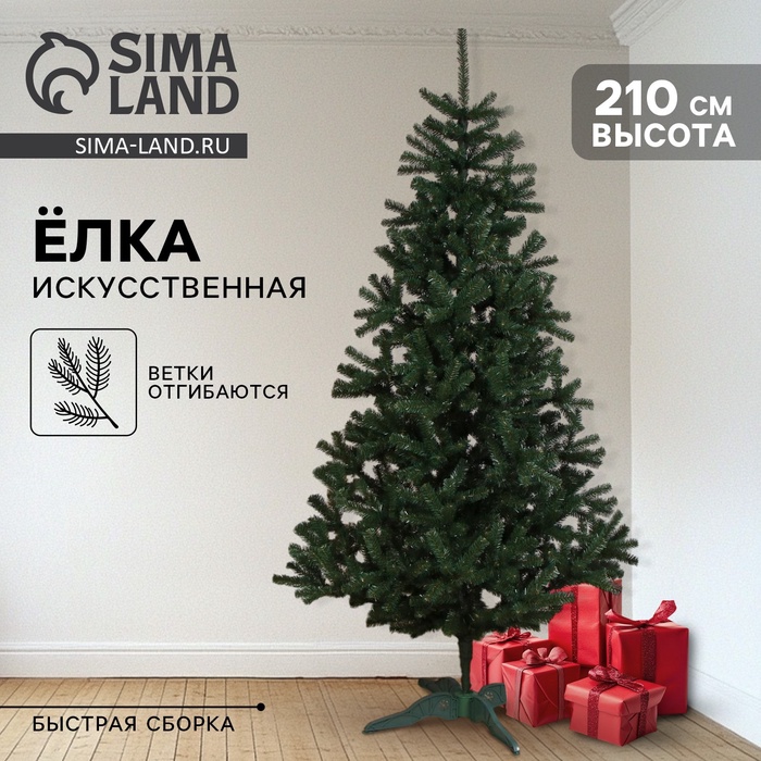 Высокая напольная искусственная ёлка 210 см с отгибающимися ПВХ ветками создаёт атмосферу новогоднего праздника в классическом стиле с оттенком советской эстетики. Модель отличается удобством в формировании кроны и естественным зелёным цветом хвои, который гармонирует с разнообразными интерьерными решениями — от ар-деко и барокко до скандинавского и шебби-шика.