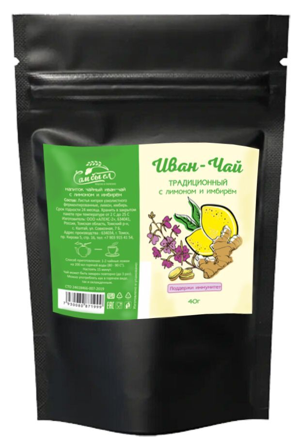 Иван-чай ферментированный с Лимоном и Имбирем / 40 г / дой-пак / ТМ Сам бы ел