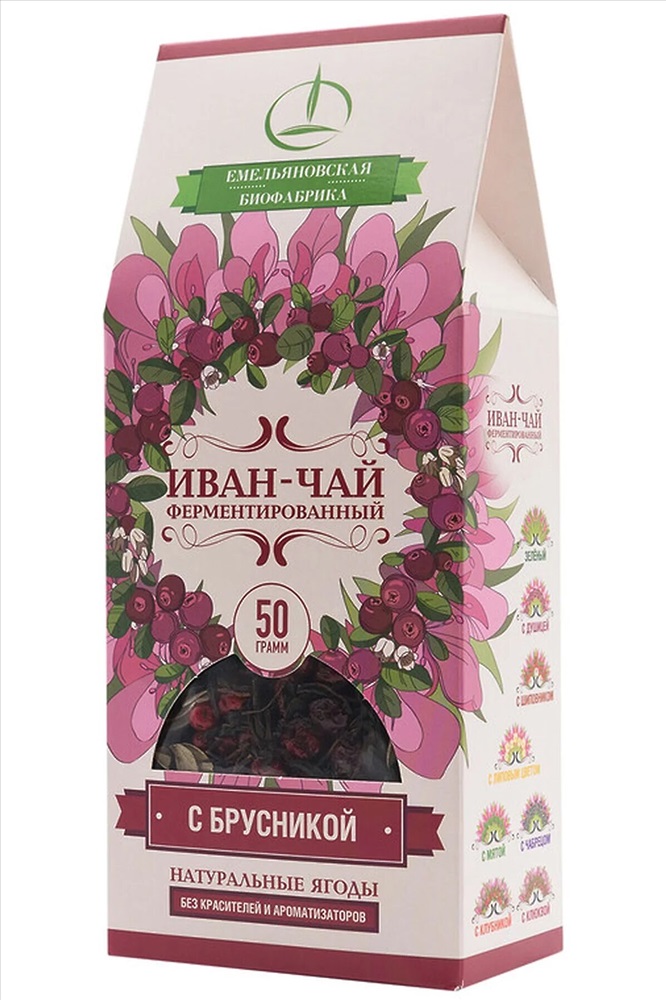 Иван-чай с брусникой ферментированный, пачка 50г