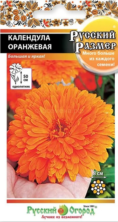 Огромные махровые цветки этой календулы превращает ее в настоящее произведение искусства! Растения кустистые, с июля до заморозков покрыты яркими цветками. Зацветает через 7-8 недель от посева.