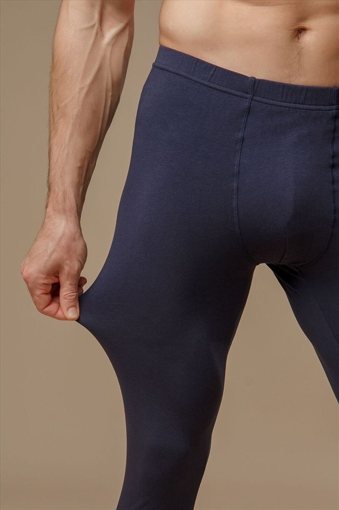 Мужские кальсоны торговой марки Индефини. Кальсоны из хлопка, синего цвета, на мягкой резинке, в классическом стиле.