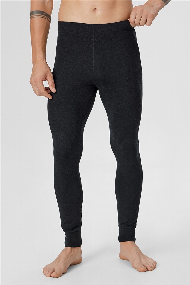 Комфортные мужские брюки из термо-материала. Силуэт облегающий по всей длине. Модель без боковых швов, с мягкой эластичной тесьмой в поясе и плоскими швами. Специальное трикотажное полотно, состоящее из натурального бамбукового волокна, шерсти и эластана, дарит изделию особые гигиенические и термические свойства. Незаменимая деталь гардероба для прохладного времени года, охоты и рыбалки, активного отдыха и спорта. Рекомендуемый температурный режим: от +5 до -20 градусов Цельсия.