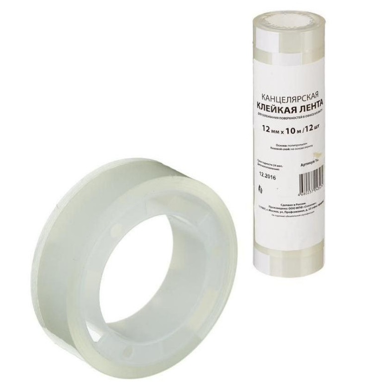 Канцелярская клейкая лента разработана специально для канцелярских нужд. Подойдет для решения большинства задач в офисе, школе и дома, связанных с упаковкой, запечатыванием, мелким ремонтом и творчеством. Имеет гарантированную длину 10 м и ширину 12 мм и обладает высокой клеящей способностью. Отличается прозрачностью и прочностью 35 мкм. Имеет специальное покрытие, благодаря которому разматывается равномерно и легко. Упаковка - термоусадка из 12 роликов. Комментарии к товару
