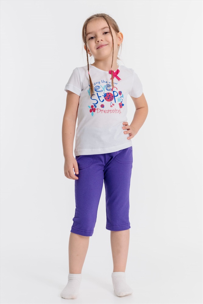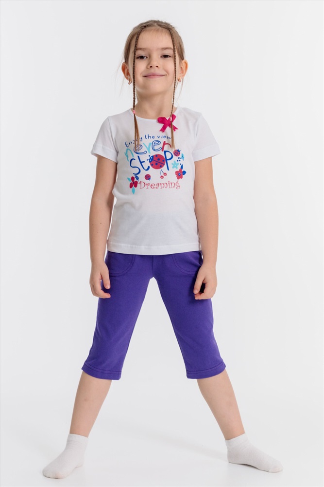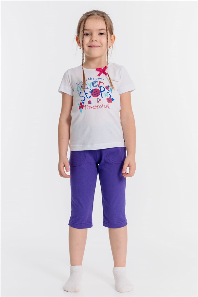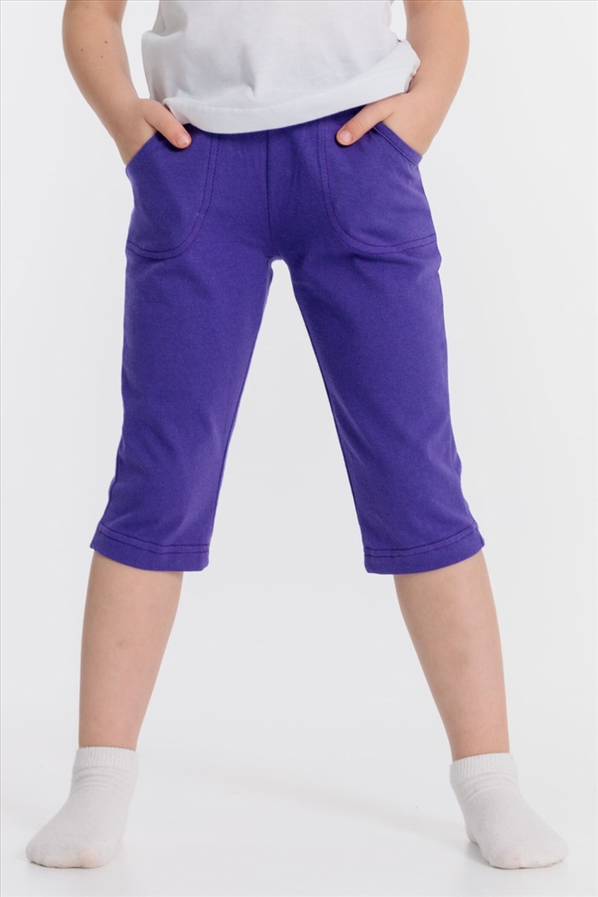 Цвет Номенклатуры: сиреневый Капри из х/б полотна с карманами и поясом на резинке.