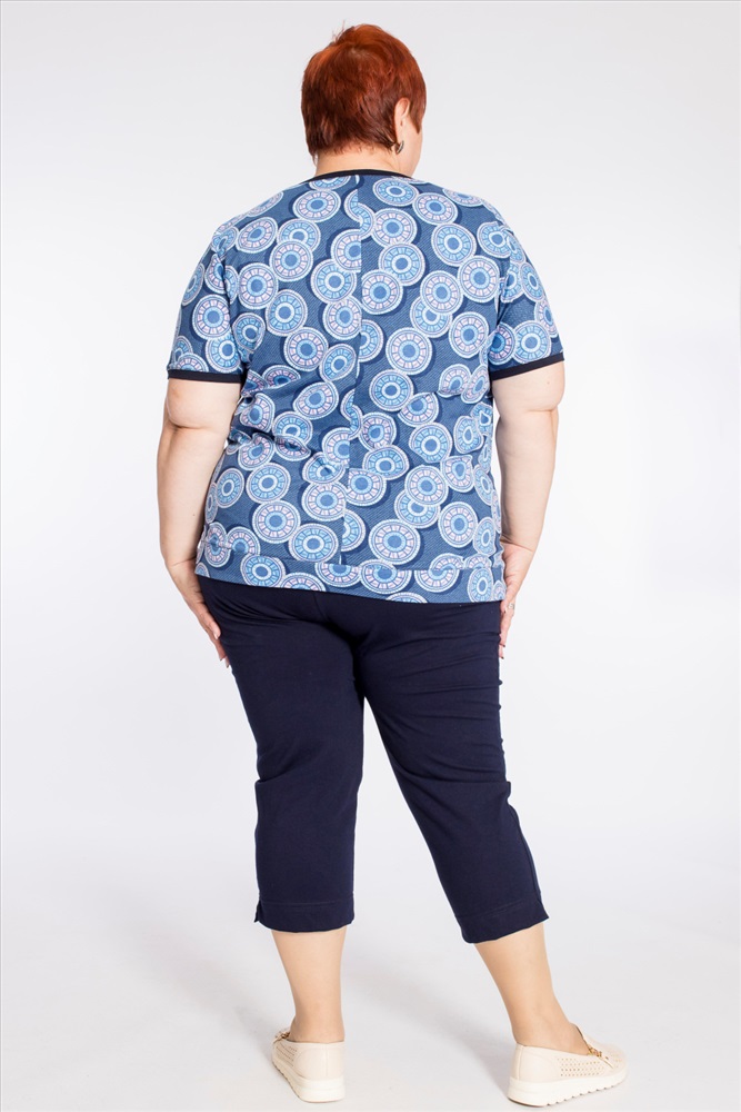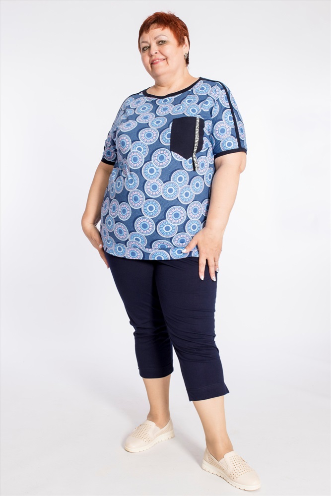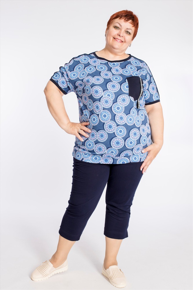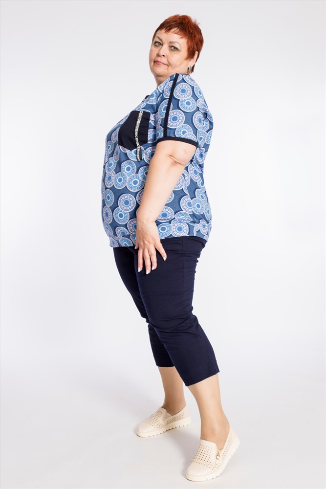 Сезон: Летний Силуэт: Облегающий Состав: Хлопок 100% Цвет Номенклатуры: синий Капри женские выполнены из однотонной хлопковой ткани, спереди с карманами, по бокам внизу с небольшими разрезами. Комментарии к товару