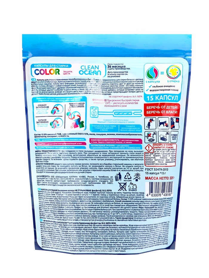 Капсулы для стирки Ocean Clean Color 4 в 1 — удобное и эффективное средство для стирки цветного белья, которое обеспечивает чистоту, сохранение цвета, свежесть и гигиеническую чистоту тканей с каждой стиркой. Комментарии к товару