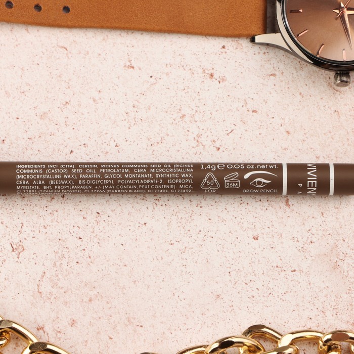 Габариты: 0,5 x 0,5 x 13 Страна: Китай В боксе: 24 шт Состав: См. на упаковке Материалы: см. на упаковке Фасовка: по 1 шт Индивидуальная упаковка: Без упаковки Сертификат: ЕАС В комплекте: Щёточка Темпер. ограничение НЕ НИЖЕ ℃: 0 Цвет: Светло-коричневый Карандаш для бровей Vivienne Sabo Coup de Genie корректирует форму и цвет, обеспечивает эффект естественных бровей, выразительных и ухоженных. Витамины и натуральные растительные экстракты оказывают успокаивающее, противовоспалительное действие. Комментарии к товару