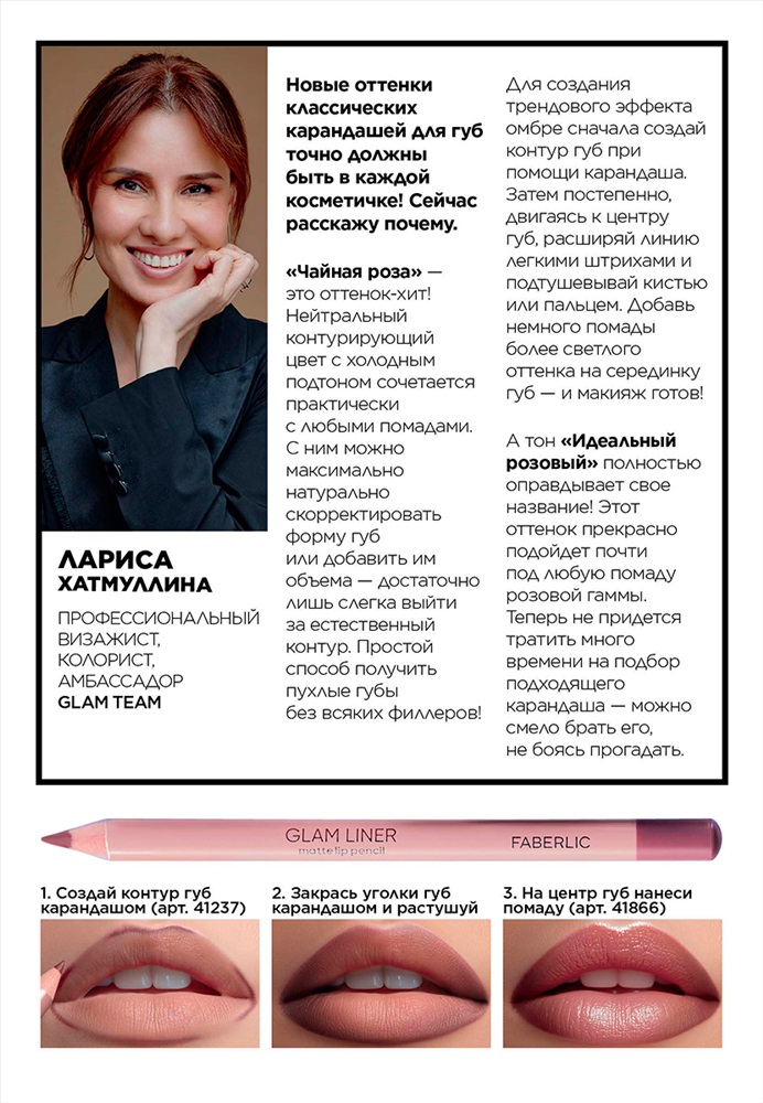 Карандаш для губ Glam Liner поможет сделать макияж идеальным. Подбирай оттенок в тон к помаде или играй на контрастах и создавай трендовые образы – выбор только за тобой!