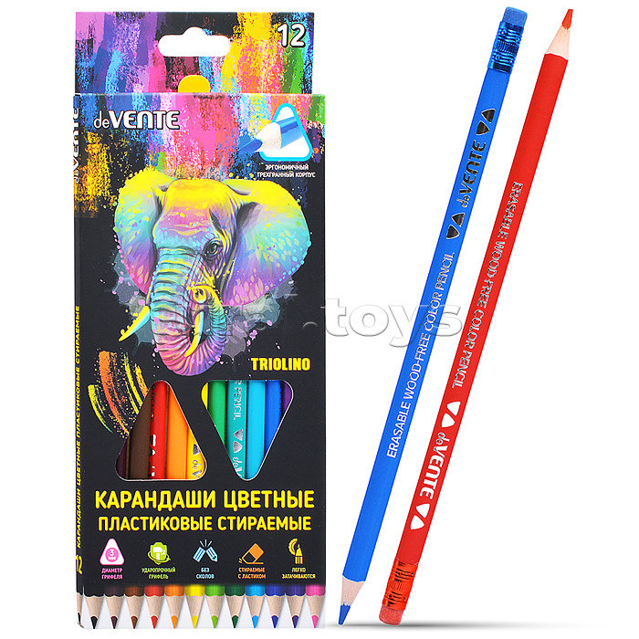 Код: 490045 Страна производитель: Китай Размеры упаковки: 9.5 x 22 x 0.6 см Количество в коробке: 120 • В наборе: карандаши цветные пластиковые - 12 цветов. • Предназначены для рисования по бумаге и картону. • Трехгранная форма корпуса. • Стираемые, с ластиком. • Яркие насыщенные цвета. • Мягкий, прочный грифель. • Лёгко затачиваются, не ломаются. • Соответствует требованиям безопасности продукции. • Для детей от 3-х лет. Комментарии к товару