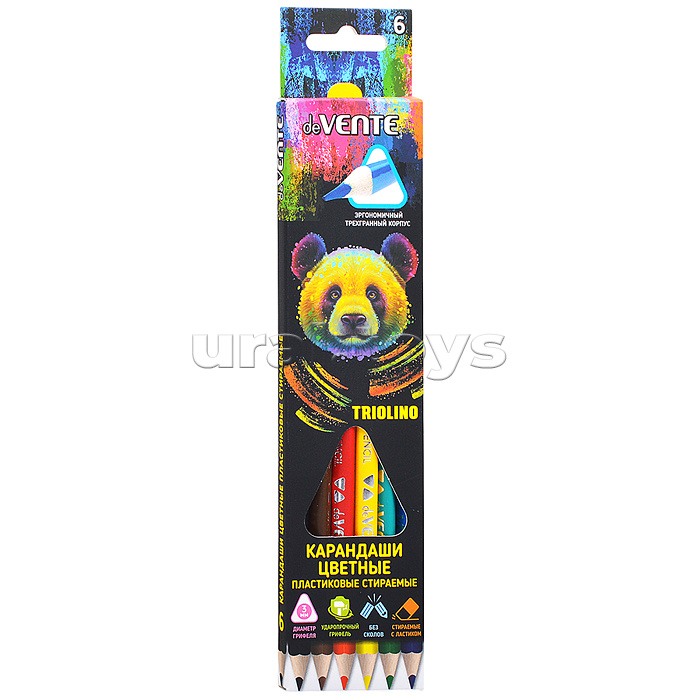 Код: 490044 Страна производитель: Китай Размеры упаковки: 4.7 x 22 x 0.6 см Количество в коробке: 240 • В наборе: карандаши цветные пластиковые - 6 цветов. • Предназначены для рисования по бумаге и картону. • Трехгранная форма корпуса. • Стираемые, с ластиком. • Яркие насыщенные цвета. • Мягкий, прочный грифель. • Лёгко затачиваются, не ломаются. • Соответствует требованиям безопасности продукции. • Для детей от 3-х лет. Комментарии к товару