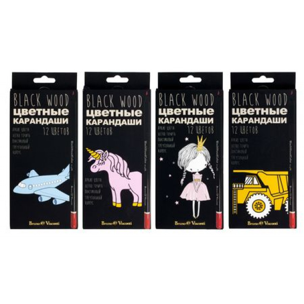 Набор из 12 цветных пластиковых карандашей «BlackWoodColor» в стильном черном корпусе. Принципиально новый дизайн продукта и упаковки при неизменно высоком качестве ТМ Bruno Visconti.