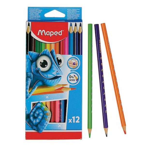 Набор заточенных карандашей MAPED «Pulse» из 12 цветов. Карандаши имеют эргономичную трехгранную форму, обеспечивающую удобное использование.