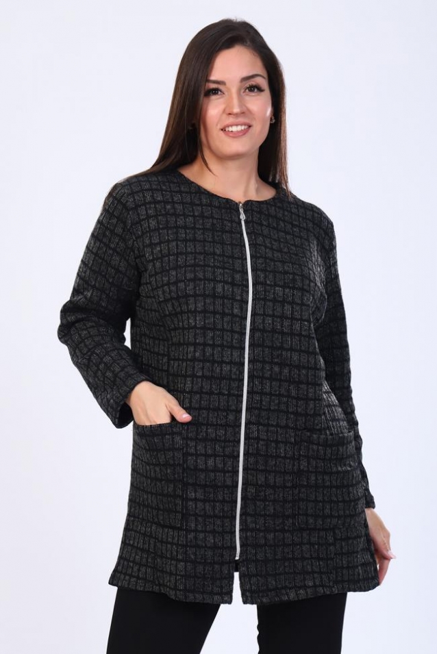 Удобный кардиган на молнии будет вашей любимой частью гардероба. Его можно надеть как с юбкой, так и с брюками. Вязаный трикотаж согреет вас в любую погоду.