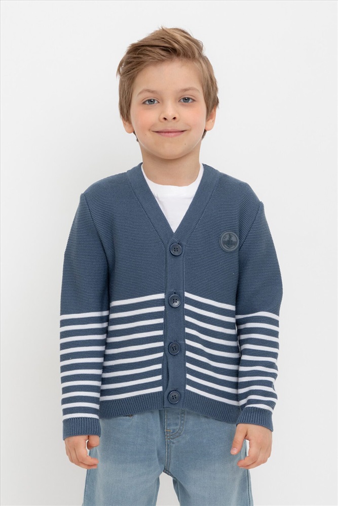 ID товара: 1022479 Акции: -3%, до 23.11.2025 Состав: Хлопок 50%, Акрил 50% Сезон: Весна/Лето Длина: Средняя Фасон: Прямой Рукав: Длинный Вид застежки: Пуговицы Вырез горловины: V-образный Рисунок: Полоска Основная ткань: Хлопок Стиль: Повседневный Страна бренда: Россия Страна производства: Россия Вязаный кардиган в полоску для мальчика с втачными рукавами. Связан из хлопковой пряжи. На рукавах эластичные манжеты. Внизу мягкий пояс. Застёгивается на пуговицы. Комментарии к товару
