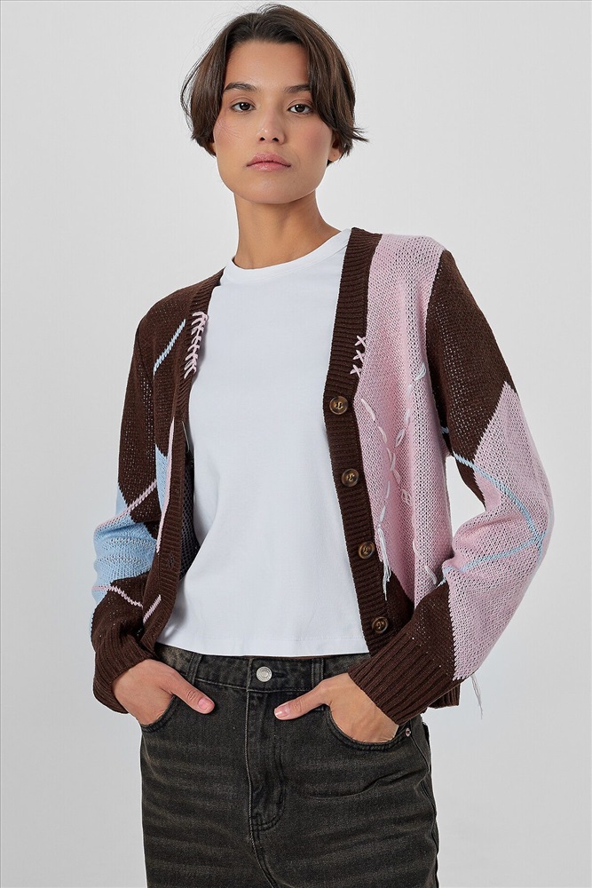 ID товара: 1207216 Состав: 100% Акрил Сезон: Демисезон Длина: Укороченная Фасон: Прямой Рукав: длинные Вид застежки: Пуговицы Вырез горловины: V-образный Основная ткань: Акрил Стиль: Повседневный Уход: Деликатная стирка при 30 градусах Воротник: Нет Фактура материала: Трикотажный Страна бренда: Беларусь Страна производства: Беларусь Женский кардиган с V-образным вырезом и длинными рукавами станет универсальной вещью в вашем гардеробе. Модель застегивается на пуговицы, что позволяет создавать многослойные образы в прохладную погоду. Особый шарм кардигану придают декоративные швы, которые добавляют модели фактурности и индивидуальности, создавая эффект авторской работы. Изделие выполнено из акрила — этот материал отличается легкостью, хорошо сохраняет тепло и надолго сохраняет насыщенность цвета, не теряя формы после стирок. Кардиган легко сочетается с базовым гардеробом, делая образ уютным и завершенным. Его можно носить с платьями, брюками или джинсами, адаптируя под любой случай. Комментарии к товару