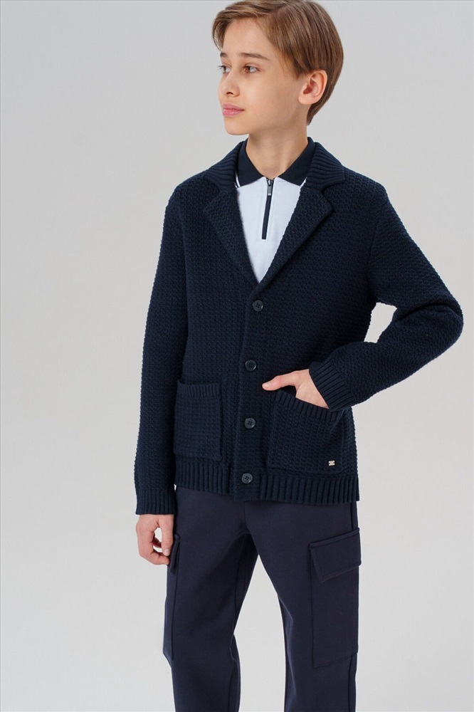 Отличный вариант для повседневной носки и школьных будней. Качественные материалы и продуманный крой делают этот кардиган практичным выбором для мальчика-школьника.